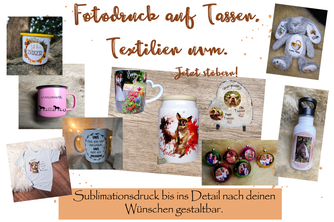 *Fotodrucke auf Keramik & Textilien zb. T- Shirts, Kissen, Plüschtiere ,Tassen, Schiefertafeln, Vasen uvm.