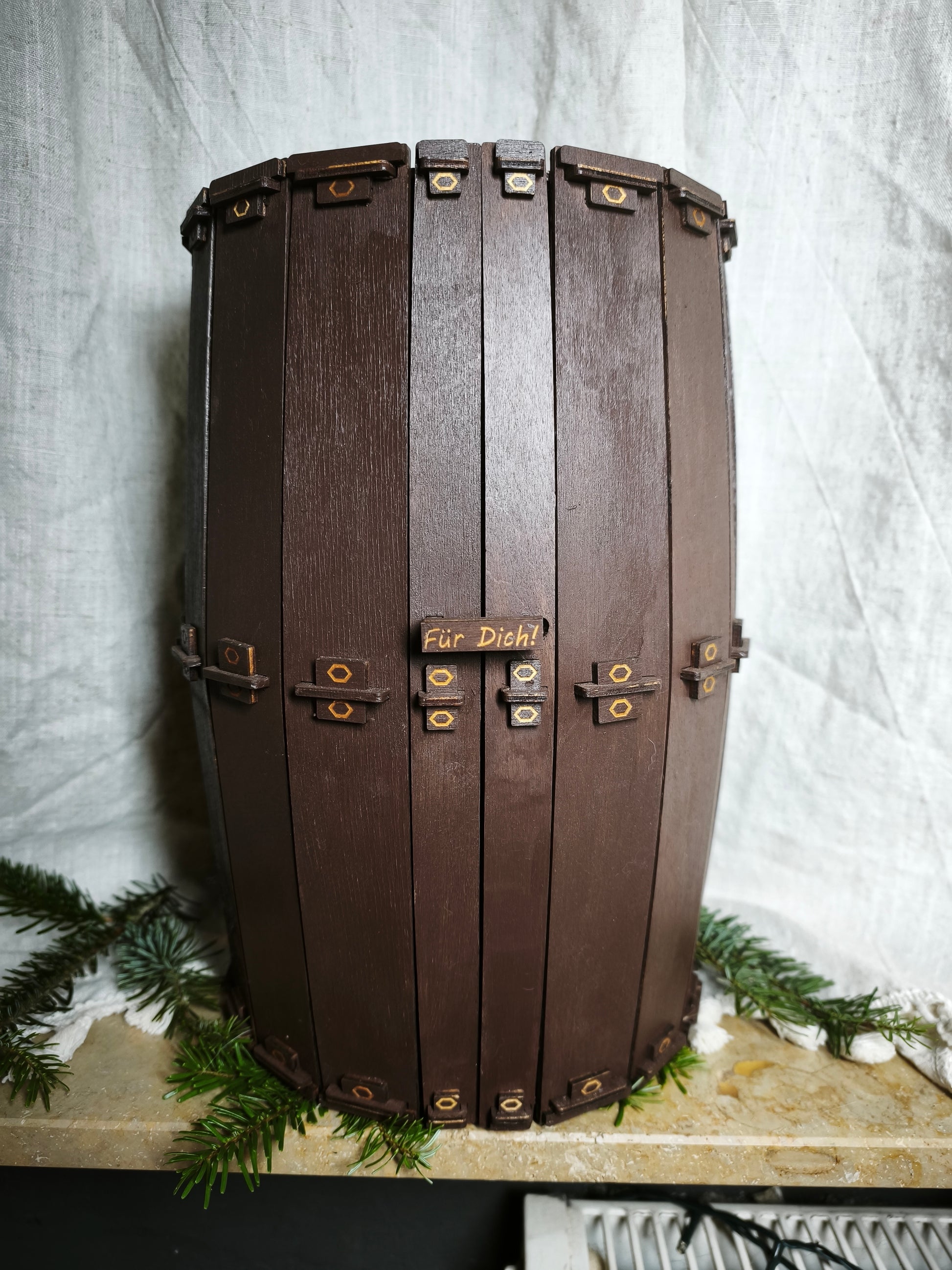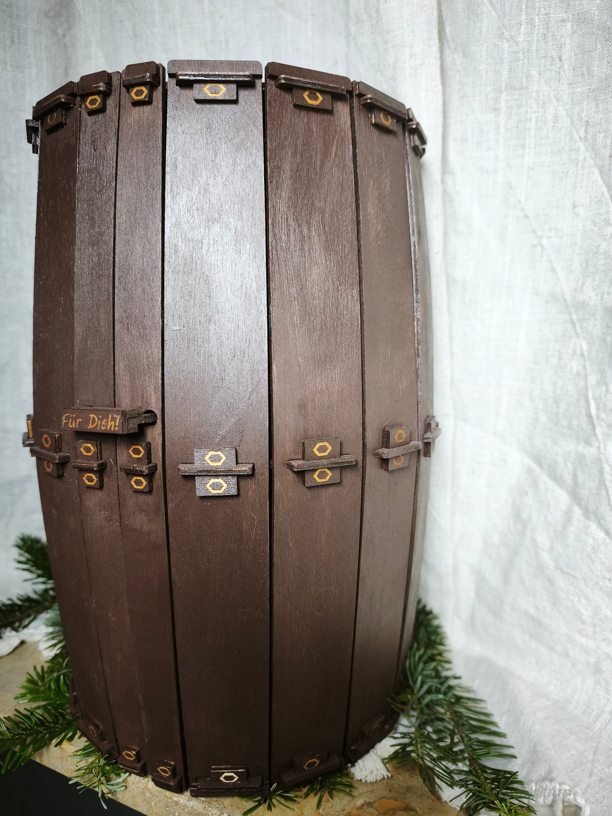 Wenn du das Fass dann noch mit einer Lichterkette ausstattest , wird es ein perfektes Geschenk !